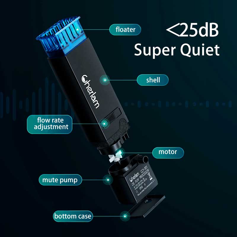 Protein on the water surface of the fish tank caused by external factors will hinder the exchange of water flow and oxygen, resulting in the death of fish. CubeOne Surafce Skimmer has a built-in super-strong eddy current motor, which can easily solve the Protein pollution on the water surface.