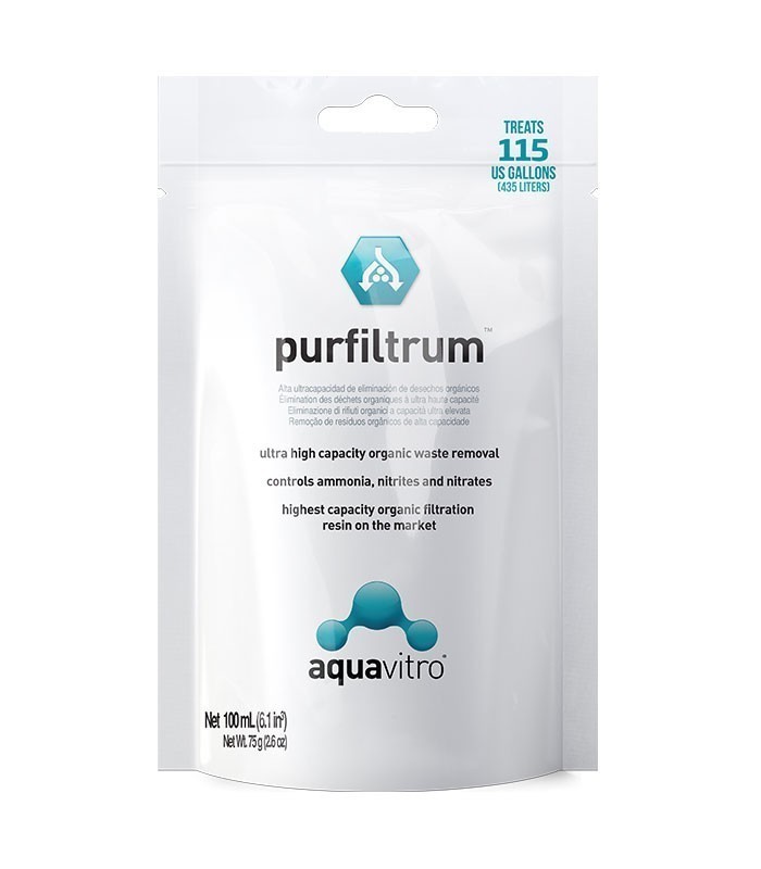Aquavitro Purfiltrum is an ultra-effective waste-removing media for both freshwater and saltwater aquarium. It removes soluble and insoluble organic impurities from water 5 to 10 times faster and more completely than all other competing products.