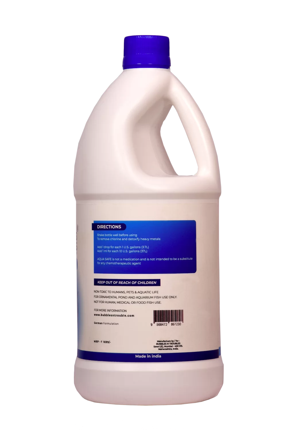 Bubbles N Troubles Aqua Safe Tap water contains various chemicals and toxins that can be harmful to fish if left untreated. AQUA SAFE CONDITIONER removes these toxic instantly.