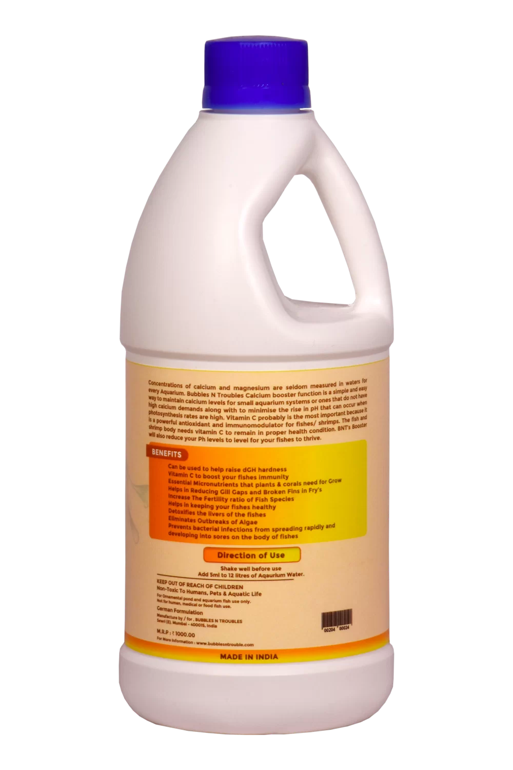 Concentrations of calcium and magnesium are seldom measured in waters for every Aquarium. Bubbles N Troubles Calcium booster function is a simple and easy way to maintain calcium levels for small aquarium systems or ones that do not have high calcium demands along with to minimise the rise in pH that can occur when photosynthesis rates are high. Vitamin C probably is the most important because it is a powerful antioxidant and immunomodulator for fishes/ shrimps. The fish and shrimp body needs vitamin C to remain in proper health condition. BNT’s Booster will also reduce your Ph levels to level for your fishes to thrive.