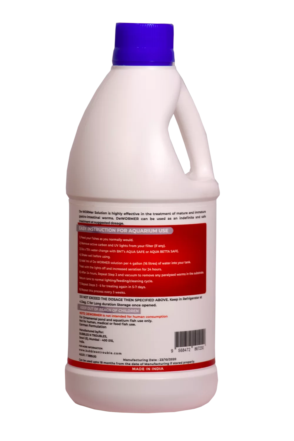 Bubbles N Troubles De-WORMer is an anthelmin8c (an8-worm) agent that works to get rid of unwanted parasites in your <strong>aquarium and boosts your pets’ depressed immune systems.