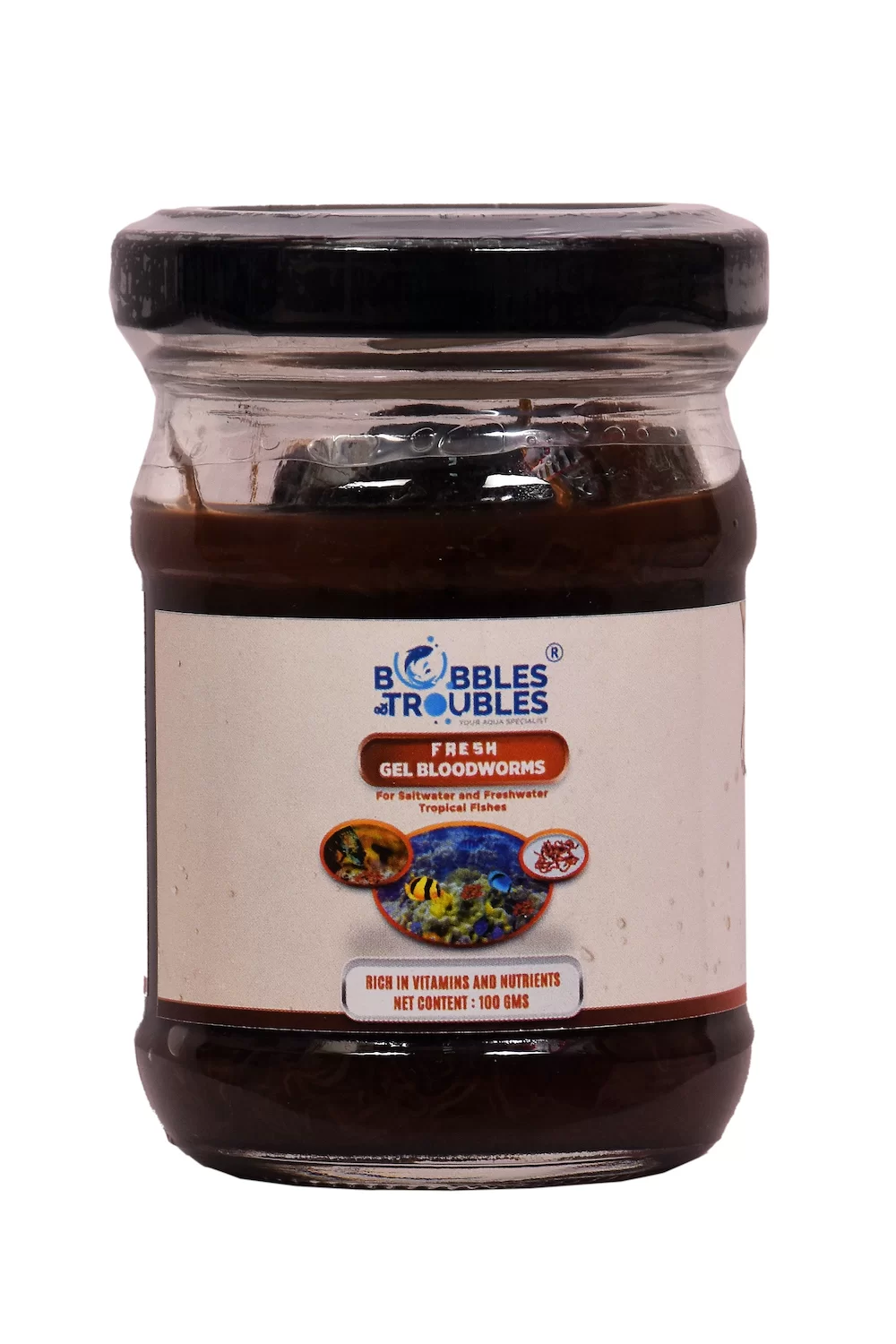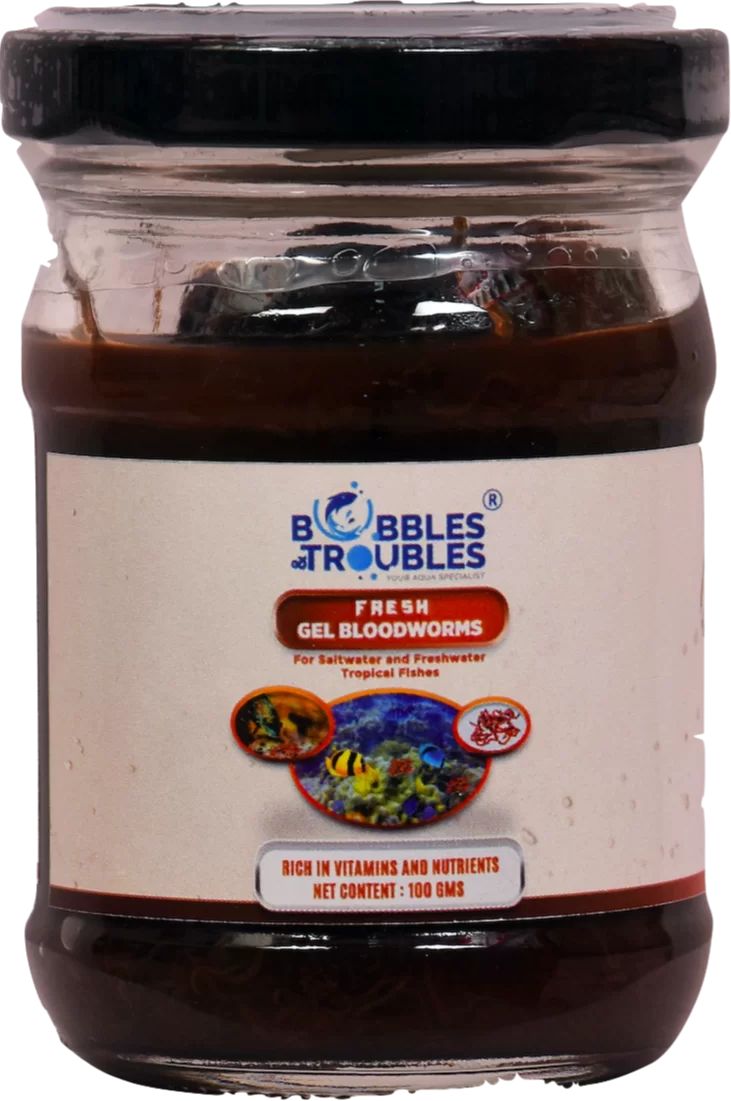 Bubbles N Troubles Fresh Gel Bloodworms 100gms For Saltwater and Freshwater Tropical Fishes