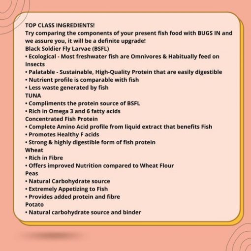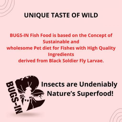 BUGS-IN Fish Food is based on the concept of sustainable and wholesome Pet diet for Fishes with high quality ingredients derived from Black Soldier Fly Larvae.