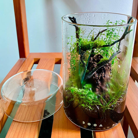 Previously released Glass Pot MARU from ‘’and ADA‘’ is re-released anew from DOOA. Taking advantage of its special characteristic of the lids as ever, you’ll be able to enjoy water cultivation of aquatic plants that prefer a humid environment such as Cryptocoryne and Lagenandora, and grow some shade-tolerant subtropical climbing plants such as Philodendron sp. ‘Papua New Guinea’ and Epipremnum aureum. It can be used for various purposes.