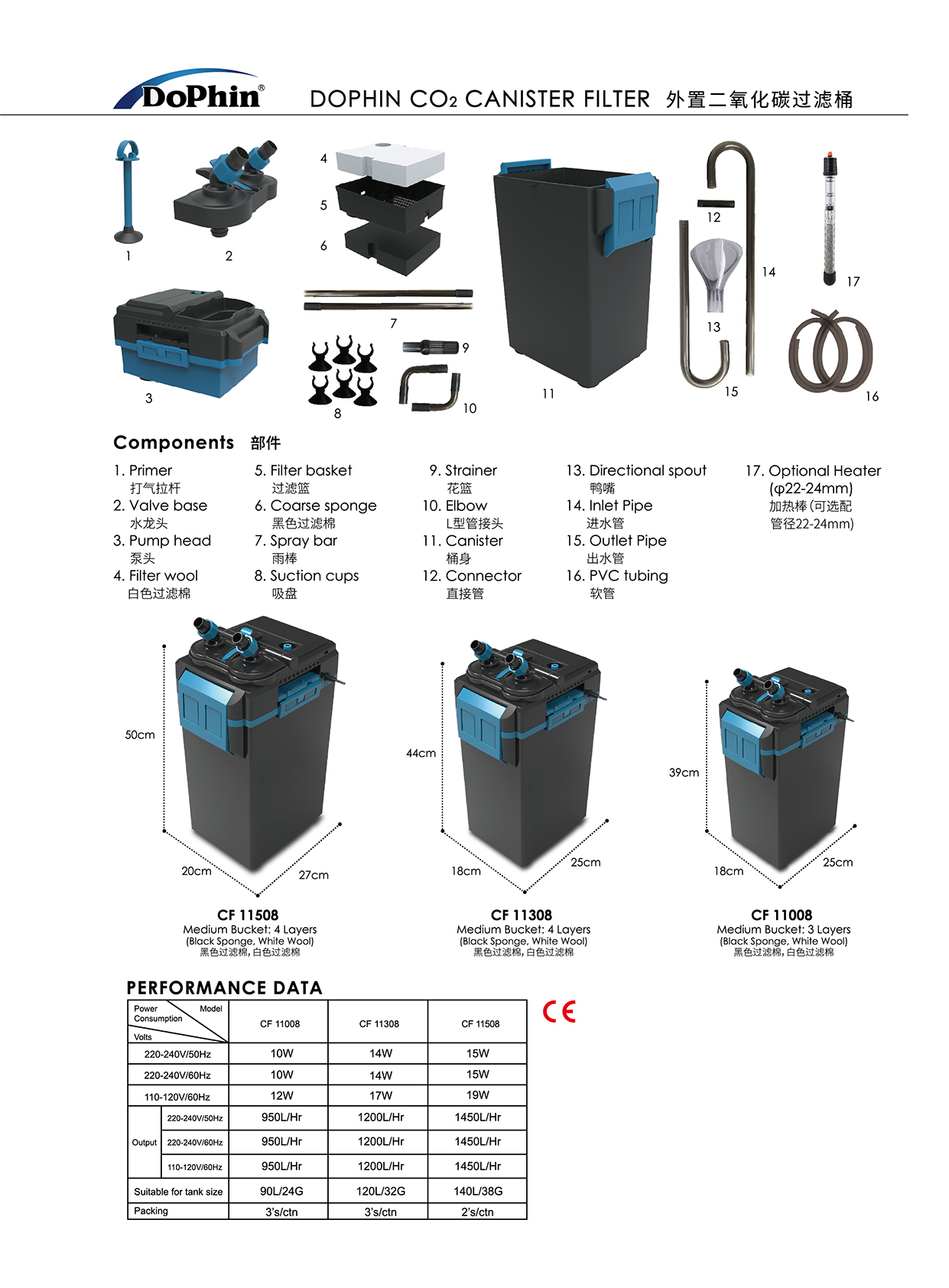 Dophin - Unique streamlined design, efficient use of the entire canister volume. Adopt super quality Dophin series pump which is less energy consumption, more reliable operation, provides longer life and low in noise.