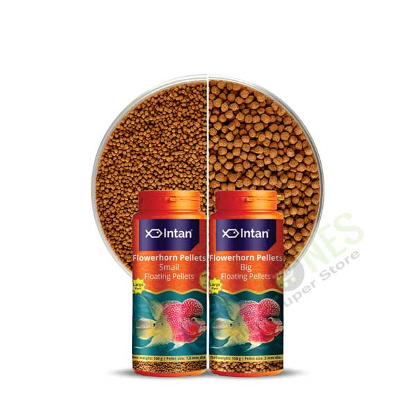 Suitable for All types of Flowerhorn and Kamfa etc. Intan Flowerhorn pellets promote natural colors, growth, and development of the fish and its prominent humpy head. Fresh Artemia is added to the formula to promote healthy growth and immunity and prevent nutritional deficiencies. This food is best suited for all types of Flowerhorn and Kamfa.