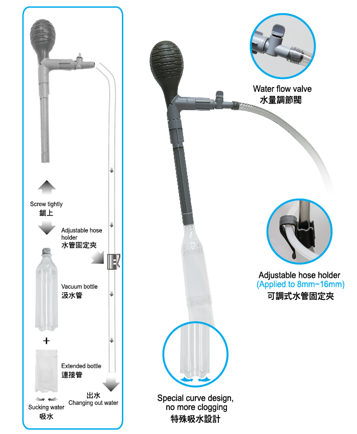 - Curve design of water vacuum bottle. no clogging of water flow