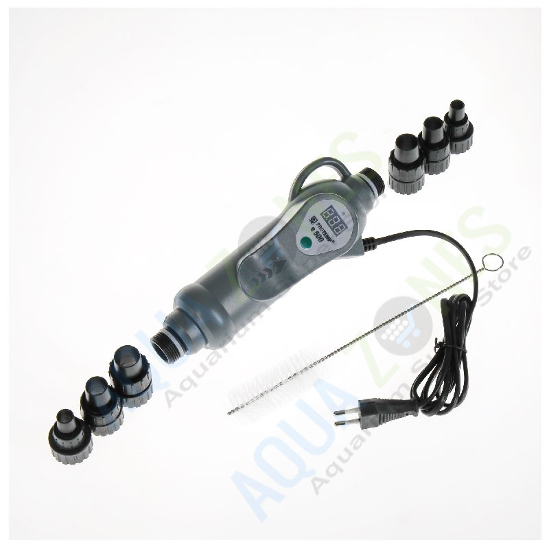 Package contents: 1 in-line heater 500 W for aquariums from 160-600 l (100-150 cm) with hose connections for 12/16, 16/22 and 19/25 mm and cleaning brush