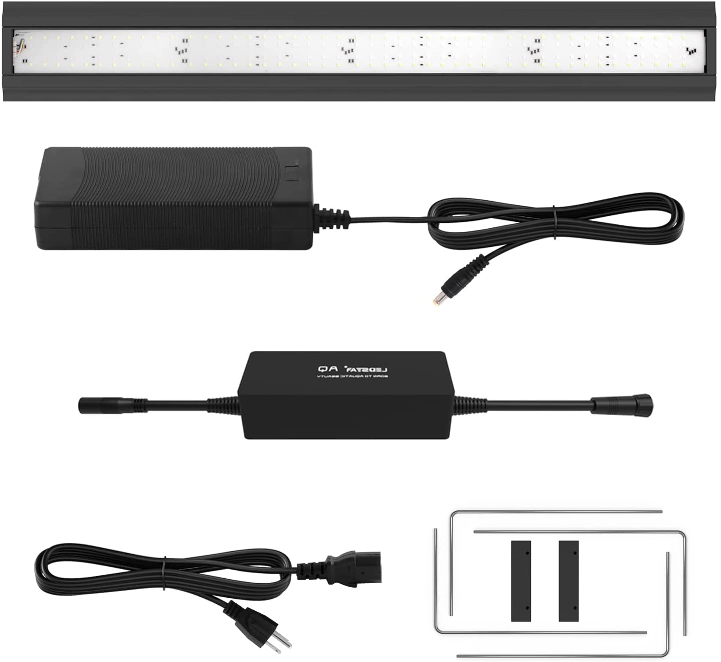 - LESTAR AQ-J90 fits aquarium rimless tanks from 35.4″ to 43.3″ in length with adjustable mounting brackets. Hang kits available for additional purchase.