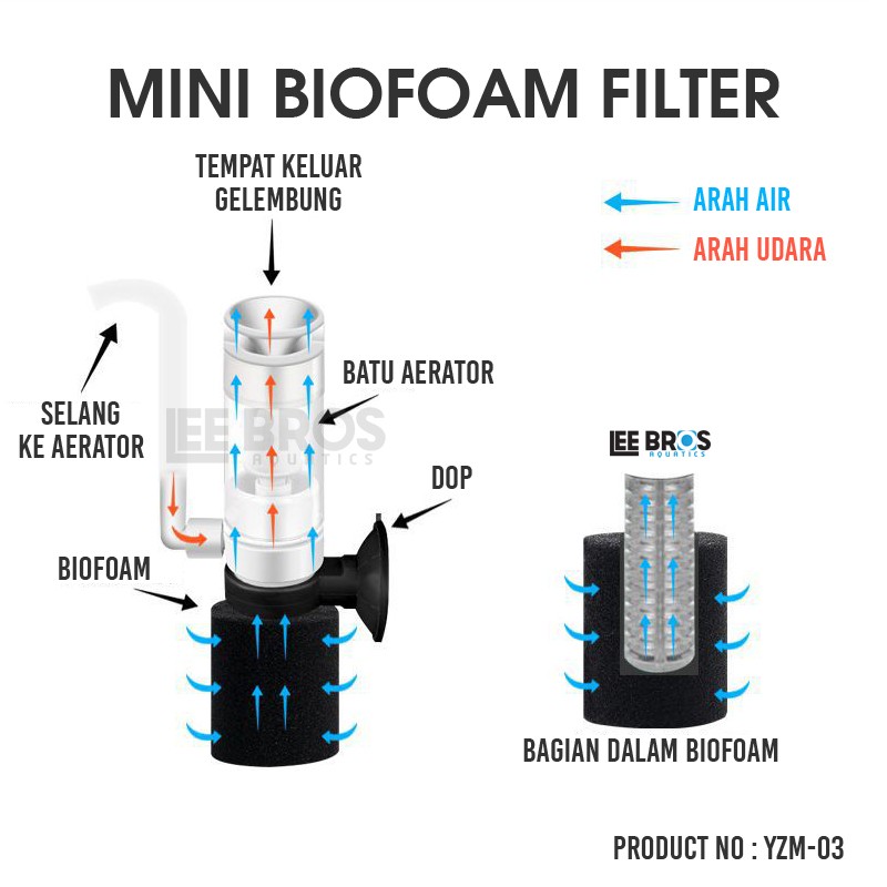 The sponge part will filter the water and at the same time create an environment that promotes “good bacteria” to grow in the sponge, providing you both mechanical and biological filtration. This filter requires an air pump which is NOT included. The air through the sponge helps with aeration of the water and at the same time creating a suction that makes your tank water pass through the sponge and capturing debris in your water.