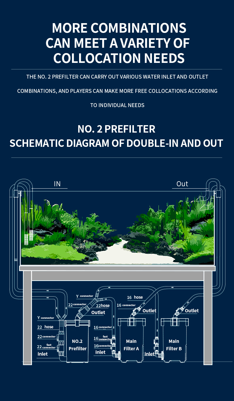 Ordinary front barrels generally clean the filter cotton once a week, No.2 pre filter semi cotton version will be cleaned once every 4-8 weeks, greatly reducing the frequency of filter sponge cleaning