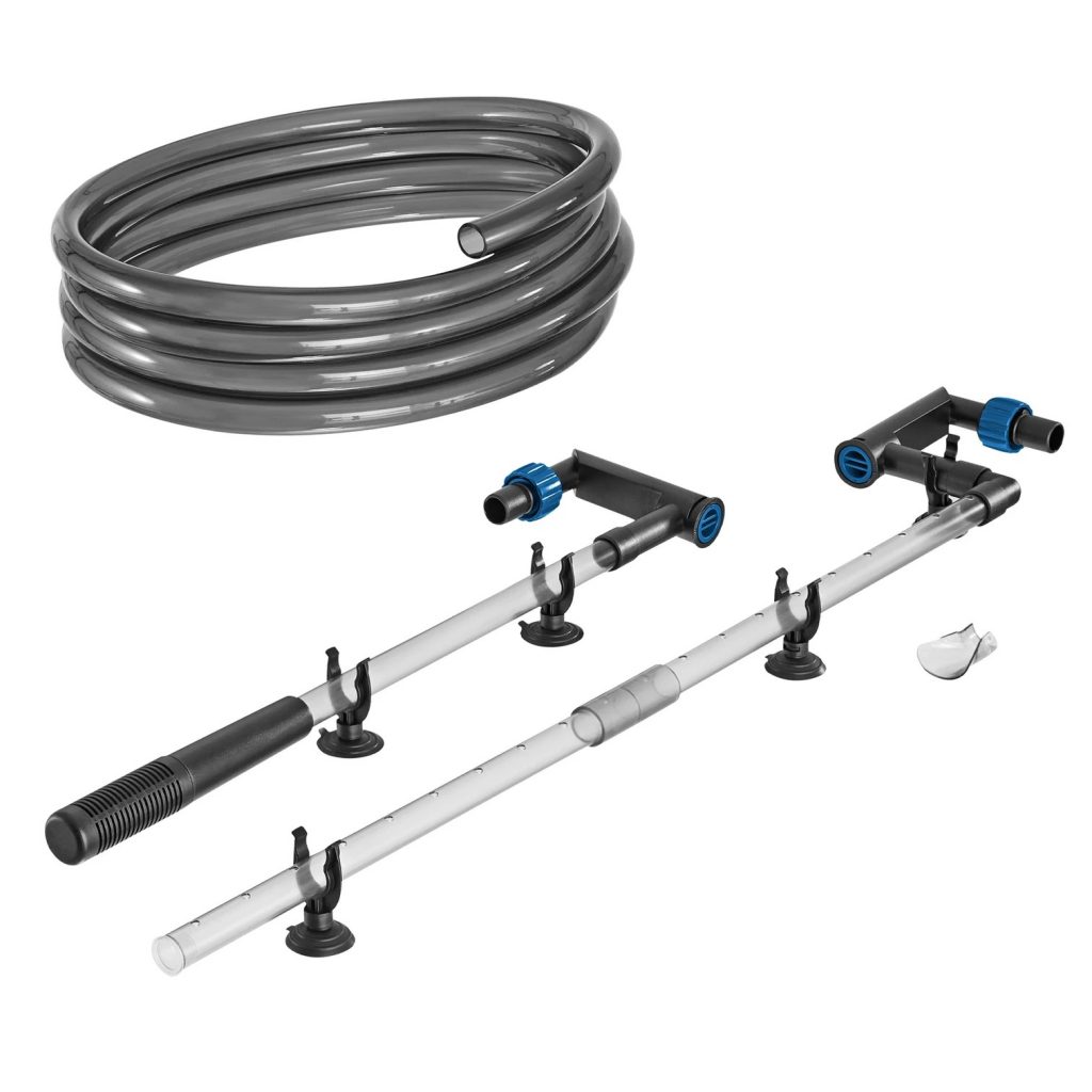 - What’s in the Box – Aquarium Filter, filter media, intake tube with inlet strainer, water distributor nozzle, spray bar, inlet and outlet adapters with flow control, tubing, fittings, heater adapter, and power cable