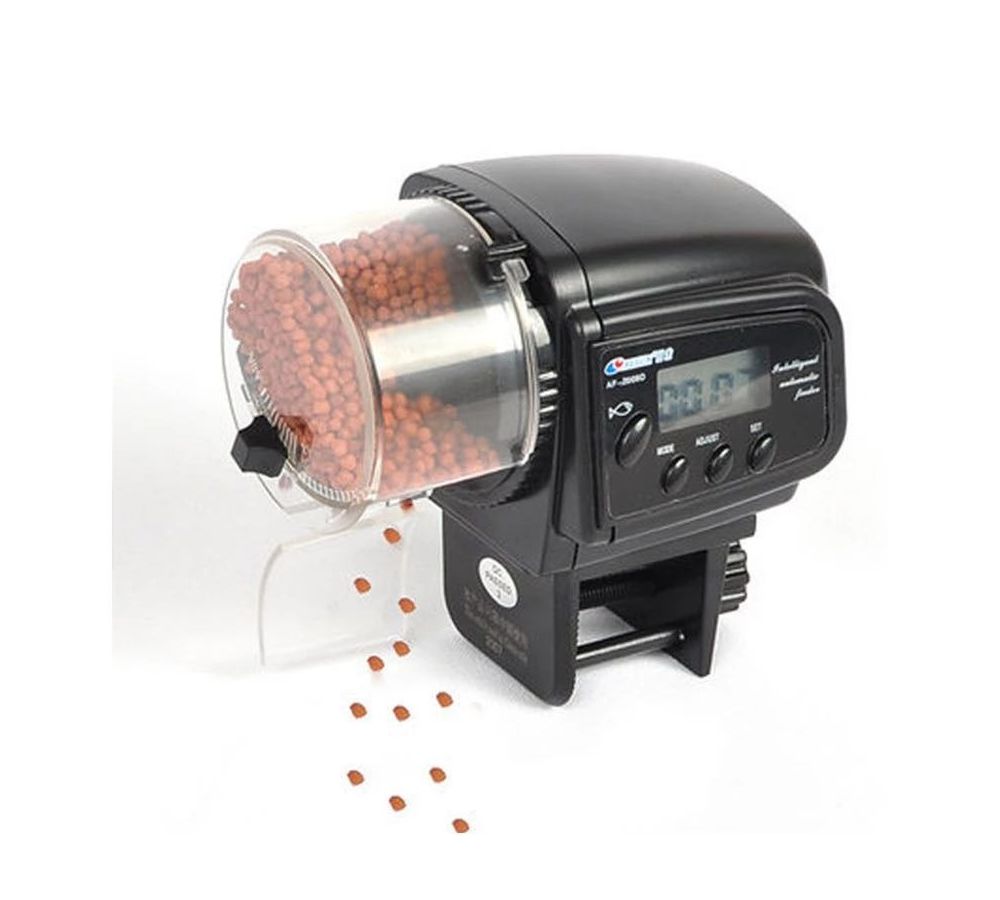 Dry, loose flake and pellet food can be used Ideal for various sizes of aquariums with two options of placing the food feeder on aquarium, free-standing or rim-mounted