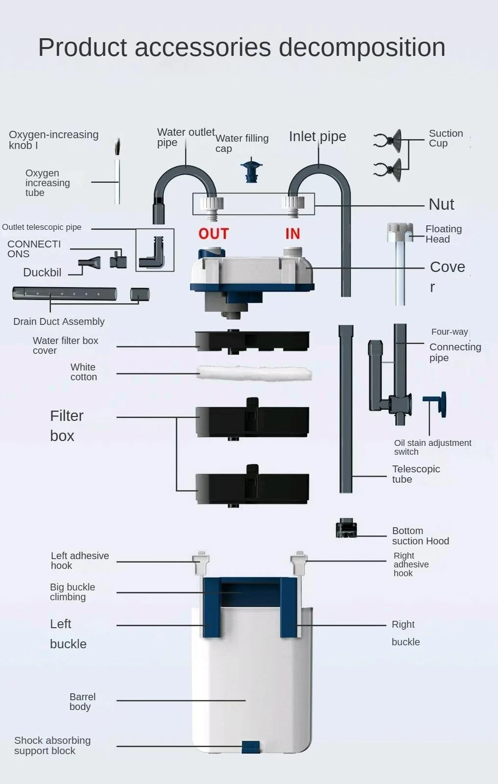 Three filtration layers: Equipped with cotton wool, they effectively remove impurities and fine particles, ensuring ideal water clarity.