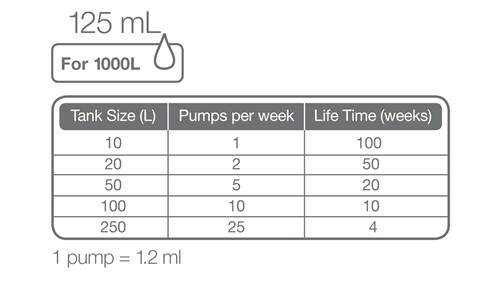 Specialised Nutrition is added each week when the water is changed. The pump bottle dispenses 2 mL per push.