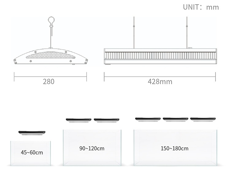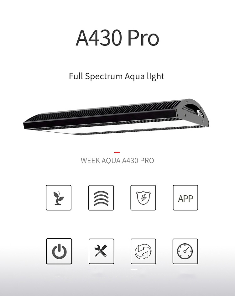 | A430 Pro | 120W | RGB-UV | AC100-240V | 7200lm | 140+10 | 60cm onwards |
