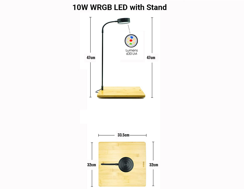 • [Full Spectrum] The WRGB LED with Wooden Stand is designed to mimic natural outdoor sunlight to help your plants grow healthier and make plants look vivid. The lamp consistently emits wavelengths in the wide range, including those wavelengths visible to the human eye (what we perceive as color) and the invisible wavelengths, like ultraviolet and infrared. As a result, it will allow plants to grow healthily, as naturally grown in the sun. Also its CRI(RA) is above 80, better than normal LED Light