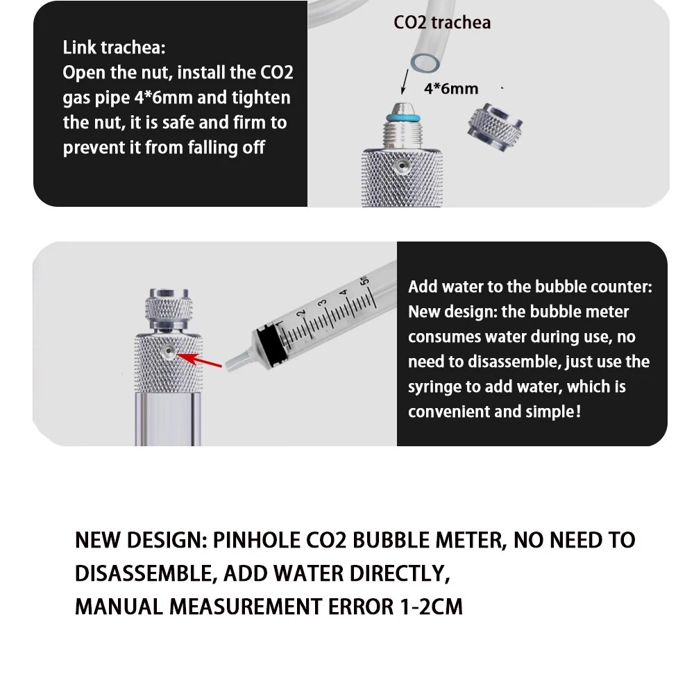 Advantages: In the process of using CO2, the water in the bubbler will be slowly consumed, and water needs to be added, but it is more troublesome to disassemble and add water. We upgraded to use the syringe port to add water directly, which is convenient and simple.